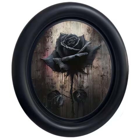 Petit cadre mural avec une illustration de rose noire style ancien.