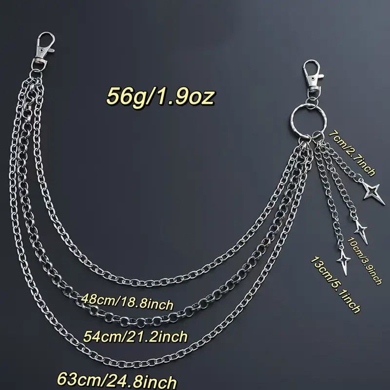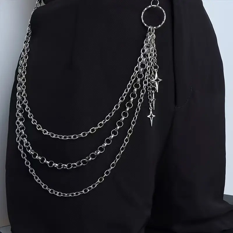 Chaîne en métal légère pour pantalon ou jupe avec médaillons en forme d'étoiles.
