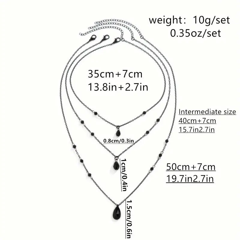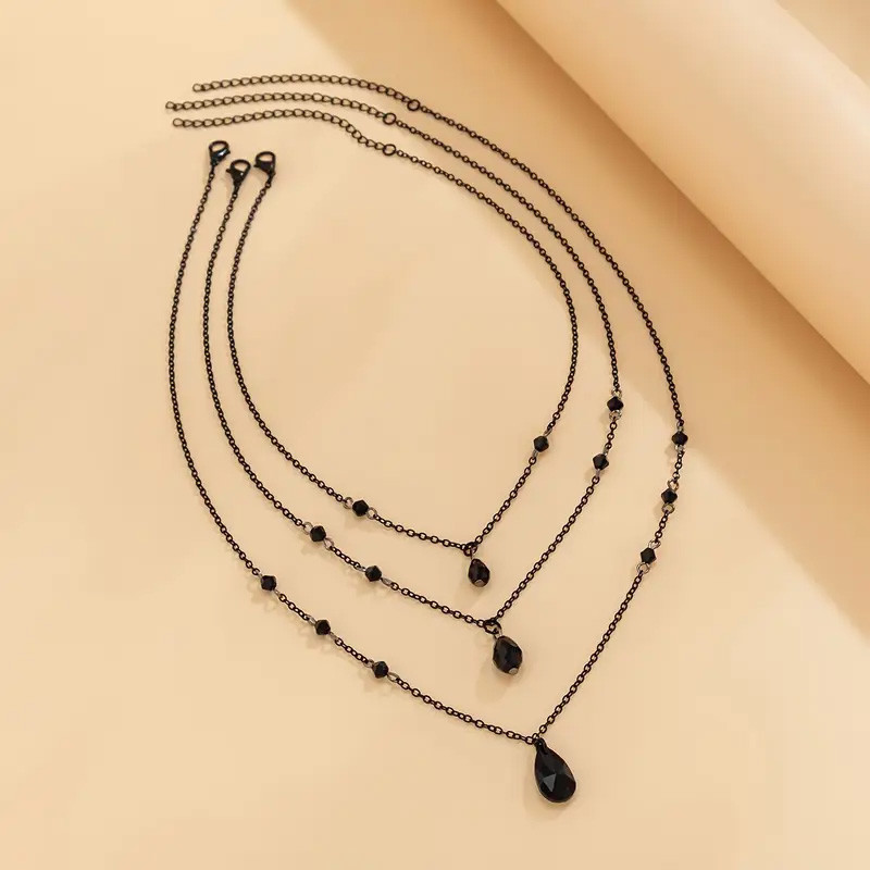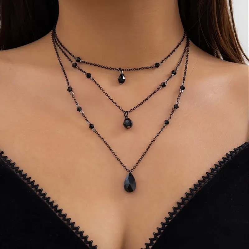 Collier Gothique composé de 3 chaînes de différentes longueurs et ornées de perles noires.