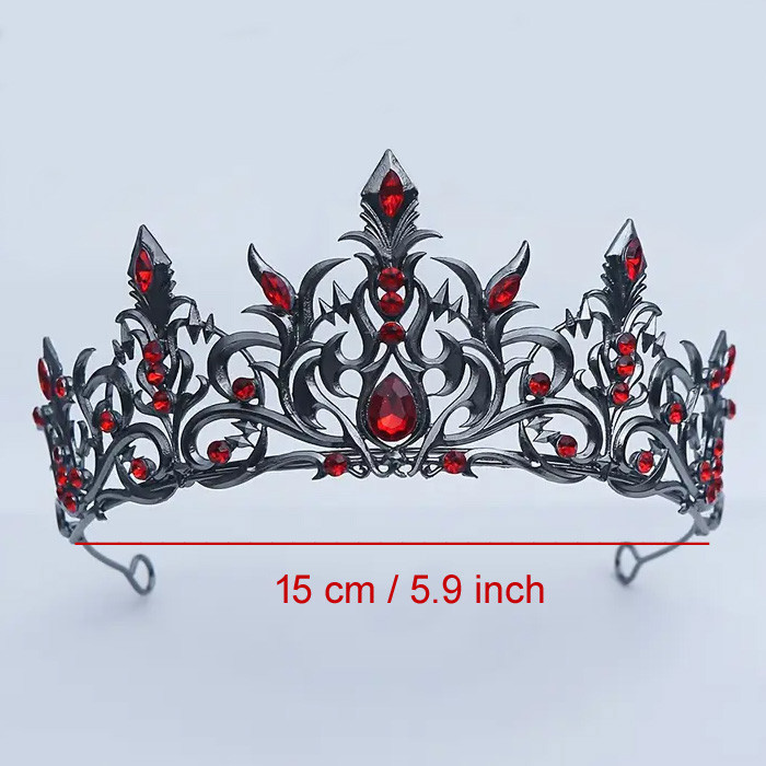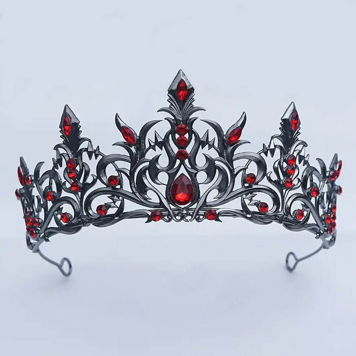 Magnifique et massive couronne gothique en métal ornée de strass rouges.