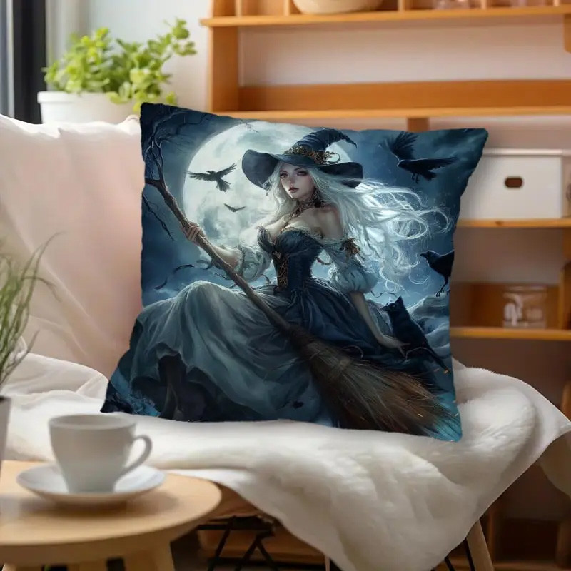 Coussin gothique avec housse amovible sérigraphiée sur une seule face avec une illustration de Sorcière.
