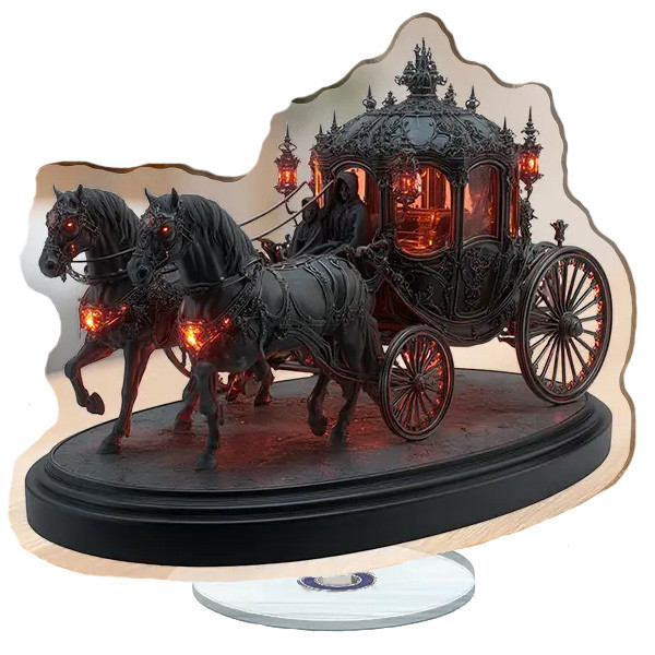 Petite décoration plate en acrylique avec une illustration représentant le calèche de l'enfer.