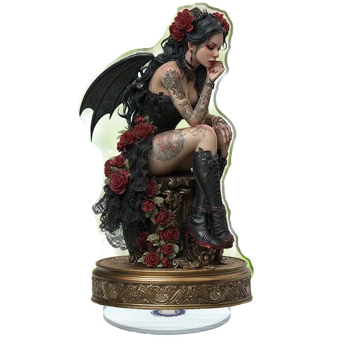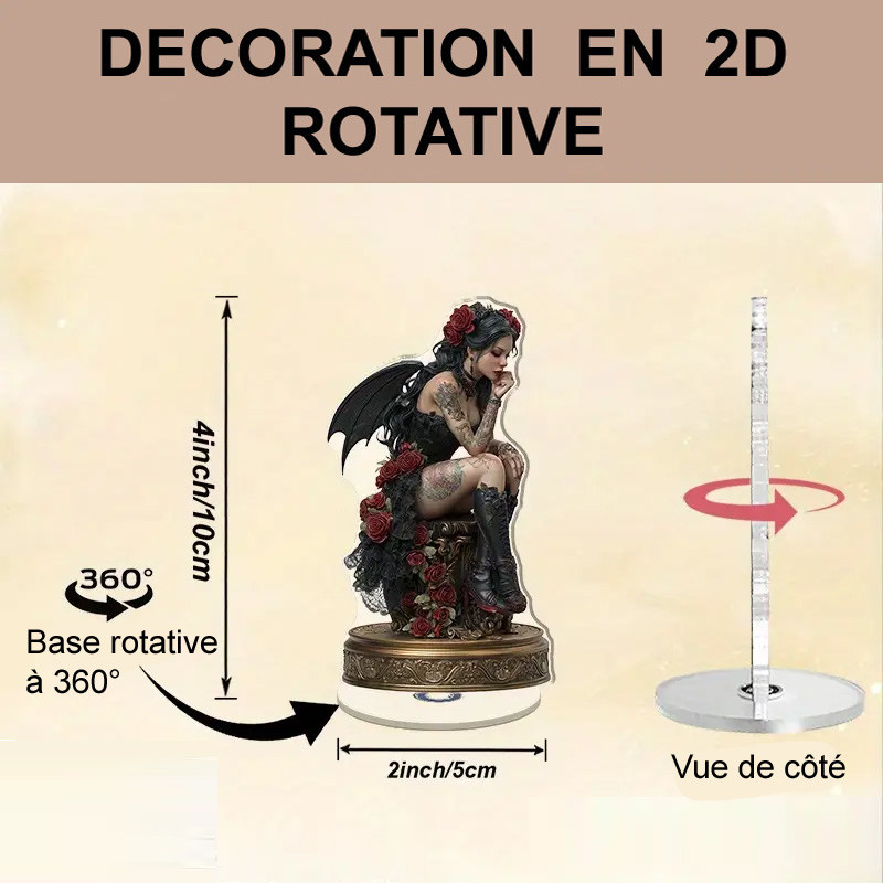 Petite décoration plate en acrylique avec une illustration de Fée Gothique.