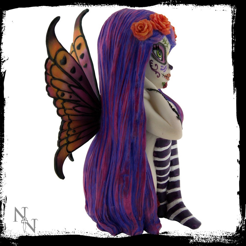 Figurine de Fée Gothique avec un maquillage du jour des morts.