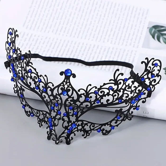 Masque Gothique en métal orné de strass rouges.
