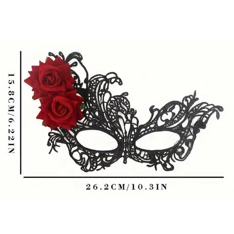 Masque Gothique en dentelle orné de roses rouges.