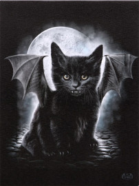 Tunique gothique noire en viscose sérigraphiée sur le devant avec une illustration représentant un chat vampire.