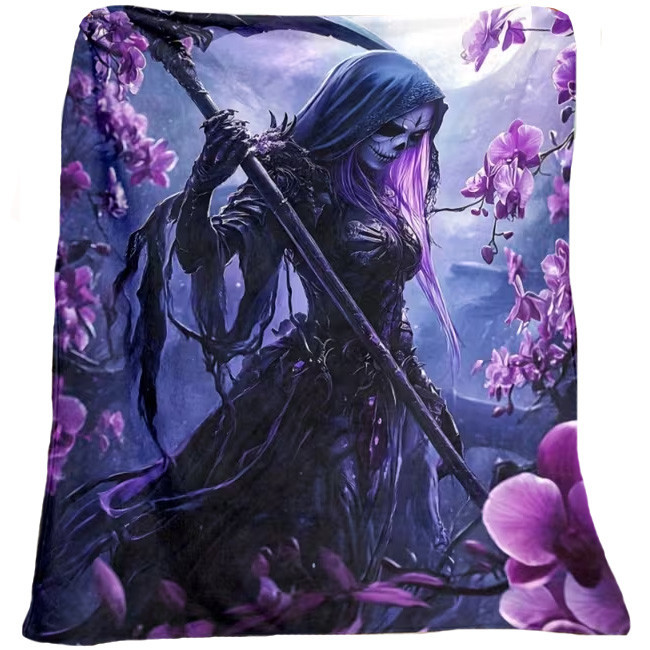 Plaid Gothique en flanelle souple 200-250g/㎡ avec une illustration sur le devant représentant une Faucheuse.