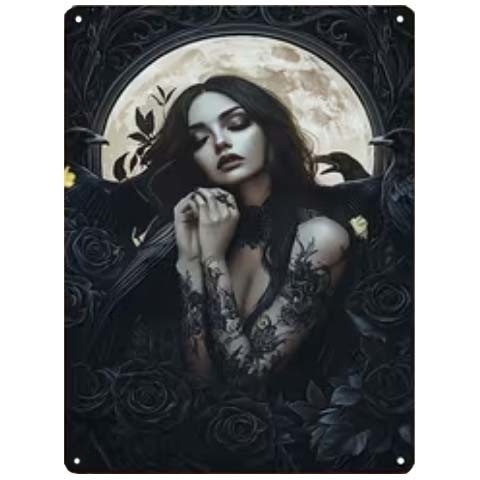 Plaque en métal Gothique avec une illustration représentant une Femme Gothique.